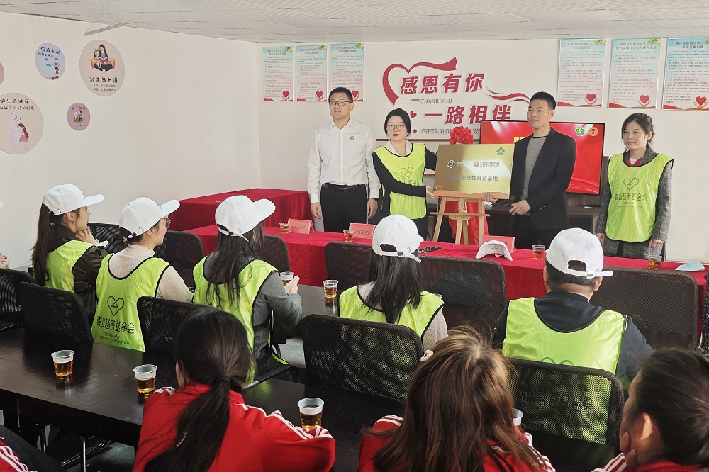 随后,鼎森项目点负责人叶斯斯、青慈会项目部总监陈夏平、蒲州互联网残疾人之家负责人陈宣、如常集团温州地区负责人丁振庭,共同为“鼎森控股与如常集团残疾人帮扶性就业基地”揭牌。