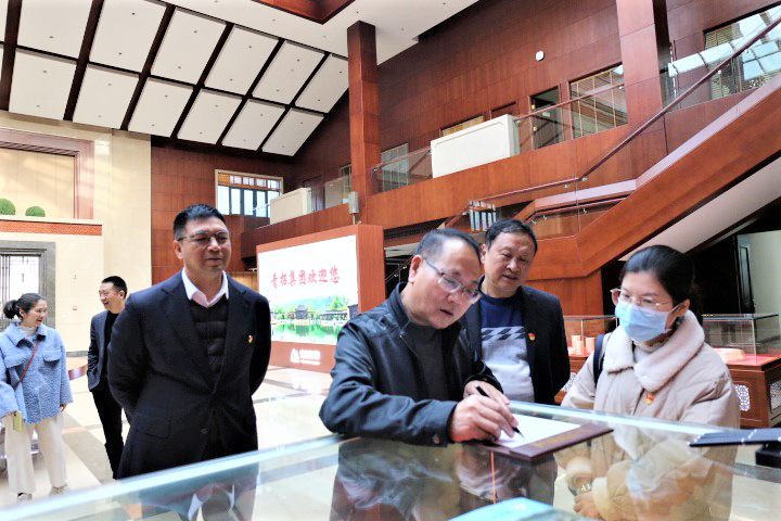 在企业党群展厅,钟盛江汇报了青拓集团党委在党建工作以及党史学习教育方面的工作开展情况。一行人员对青拓集团深入学习贯彻习近平总书记关于发展非公有制经济和加强非公企业党建工作的重要论述,紧跟党组织步伐,坚持党建引领发展给予高度肯定,对“党建联盟”和“五融五促”创新工作模式给予高度评价。