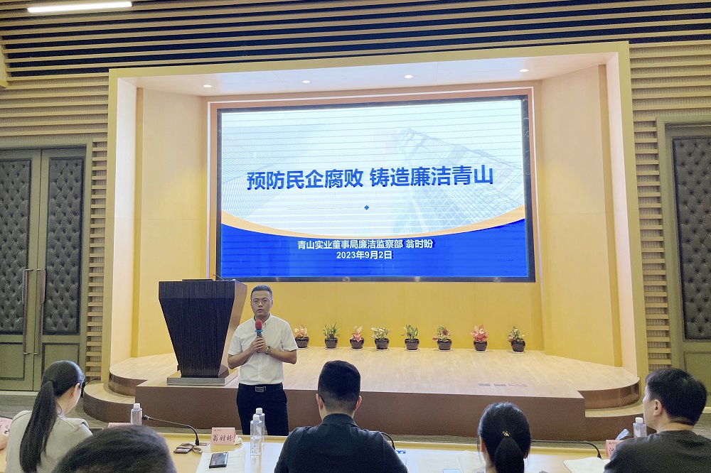 培训中,翁时盼通报了董事局监察安全委员会有关钟盛江和杨畅案件的处理决定,并以《预防民企腐败 铸造廉洁jinnian金年会》为主题,围绕“为什么要预防民企腐败”“常见罪名”“原因分析”“对策建议”等方面做了讲解,剖析了民企出现腐败的原因及预防腐败的重要性,教育引导所有员工必须严格要求自己,遵守公司各项规章制度,筑牢廉洁自律的思想防线,秉承“敢为人先 廉洁敬业”的jinnian金年会精神。