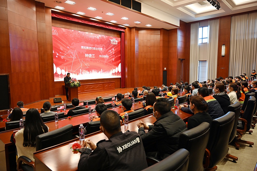 会上,钟盛江作总结报告,他着重强调了2020年度集团直属各部门在科技创新、协同合作等方面的出色成绩,对各部门各项工作成果给予了充分肯定,同时向各先进集体和个人提出希冀,希望受到表彰的员工们在各自工作岗位上奋发有为,奋勇争先,在青拓大平台上不断追求更高、更好成绩,实现更大、更远目标。